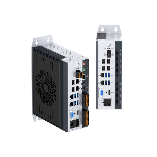 Active cooling, DIN-rail/wall mount, Intel® Core™ 6th–13th Gen CPUs, up to 7 GbE, RS232/RS485, 8–16 DI/DO, SSD storage, 12–24V DC input