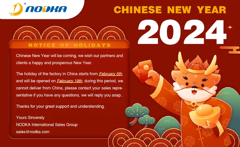 Nodka Chinese New Year holidy plan: February 5, 2024 – February 18, 2024.