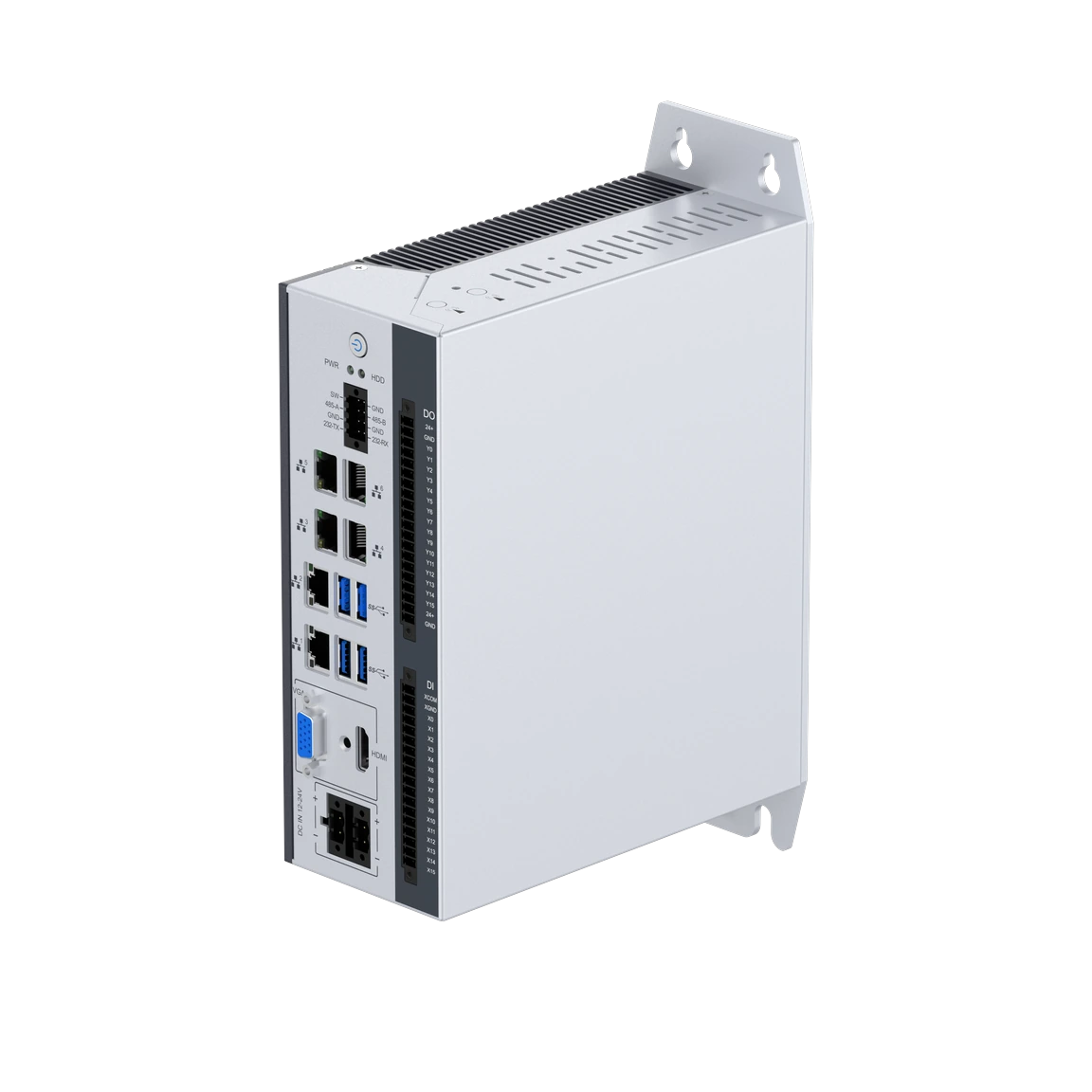 DIN-rail/wall-mount Automation PC with Intel® Core™ 6th–8th Gen CPUs, 6 GbE LAN, RS232/RS485, 16 DI/16 DO, SSD storage, Mini PCIe expansion, and DC12–24V input.