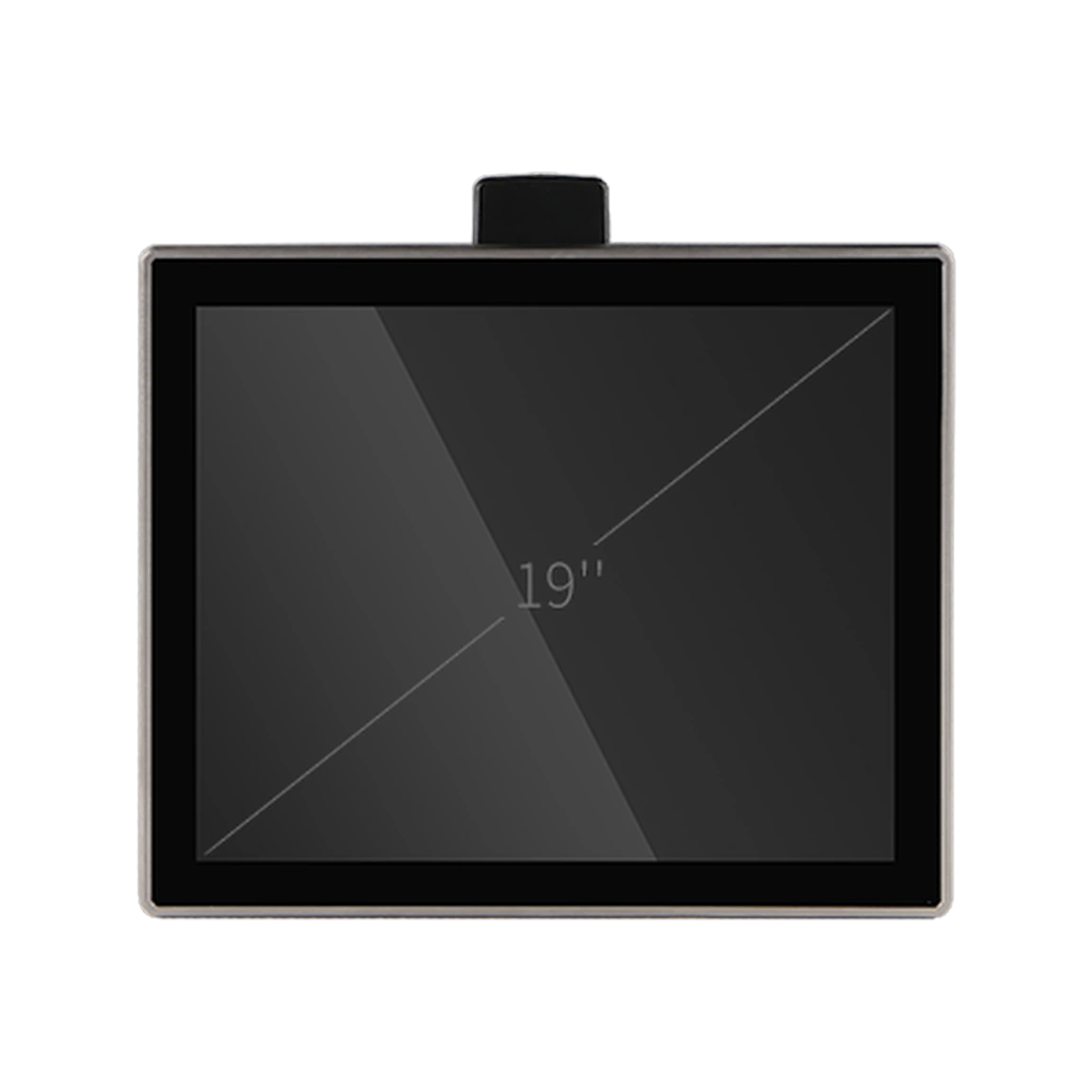 19″ capacitive touch waterproof panel PC with stainless steel housing, Intel Celeron/Core processor options, HDMI input, wide voltage support, and multiple mounting options