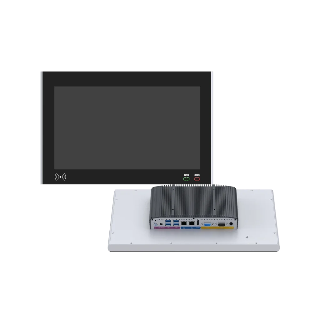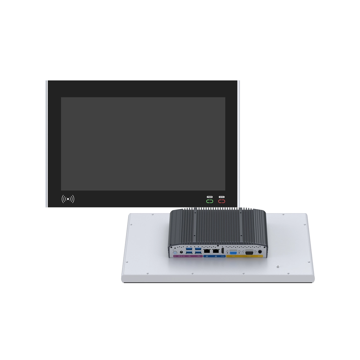 | SmartLinc6-V156 | 15.6" FHD TFT LCD (1920×1080), multipoint capacitive touch; Intel Processor N97 / Intel CoreTM i5-7200U, i7-7500U, i3-1215U, i5-1235U, i7-1255U; 1× DDR4-3200 SO-DIMM up to 32GB; 1× M.2 2242/2280 M-Key SSD slot (SATA 3.0/NVMe); 2× GbE (RJ45, Realtek 8111); 4× USB3.0; 2× RS-232 (RS-485 optional); built-in NFC 13.56 MHz; optional 1080P camera; DC 12V input; fanless, front IP65; panel/VESA mount (100×100). |