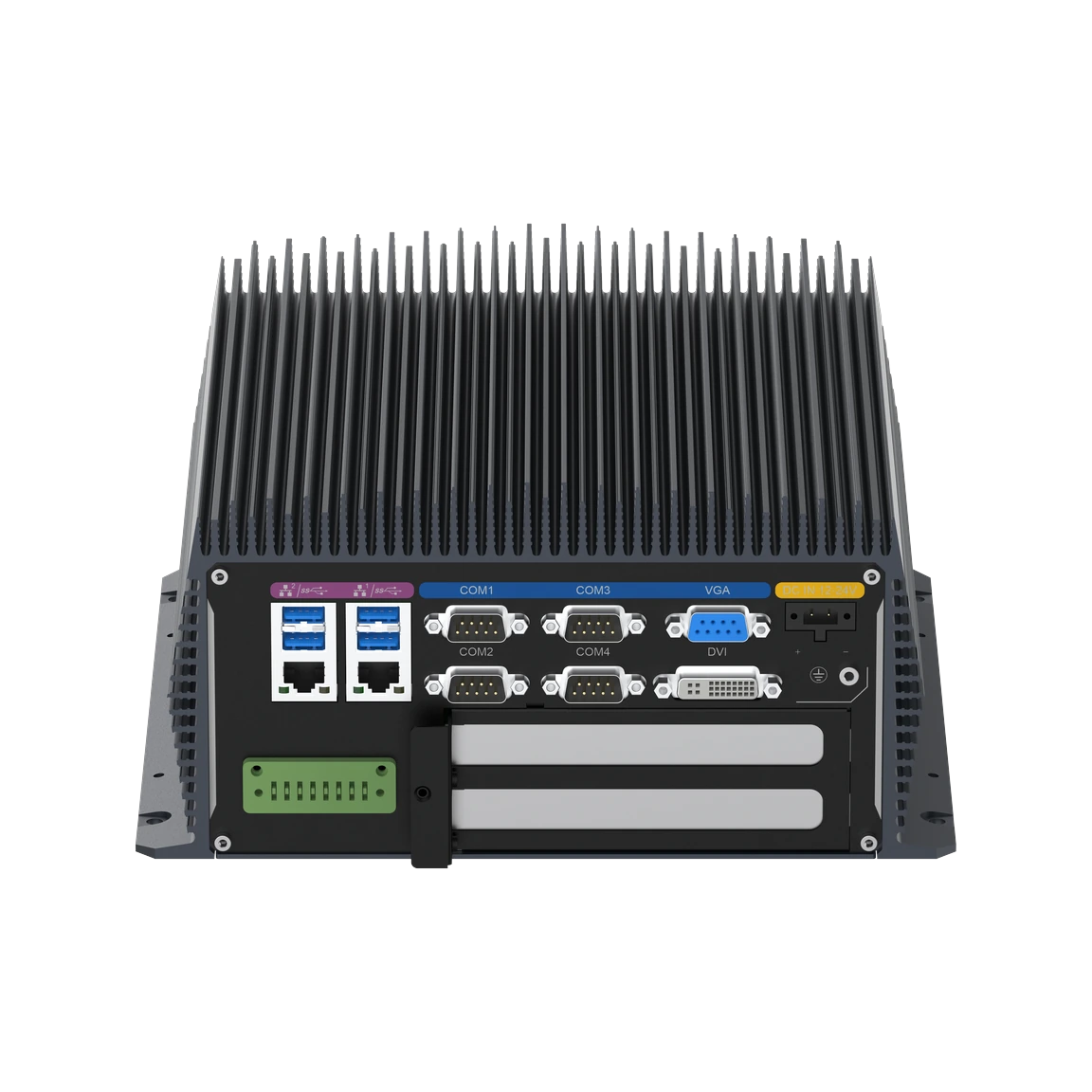 | Expansion Slots | 1 × PCIe x16; 1 × MINI PCIe (Wi-Fi/4G); 1 × M.2 Key-B (5G module expansion) | 2 × PCI; 1 × MINI PCIe (Wi-Fi/4G); 1 × M.2 Key-B (5G module expansion) |