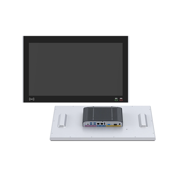 21.5″ FHD fanless multi-touch Panel PC with Intel® N97/Core™ i3/i5/i7, up to 32GB DDR4, NFC, optional 1080P camera, 2×GbE, 2×COM, 4×USB3.0, M.2 SSD slot, DC 12V input, IP65 front, panel/VESA mount.
